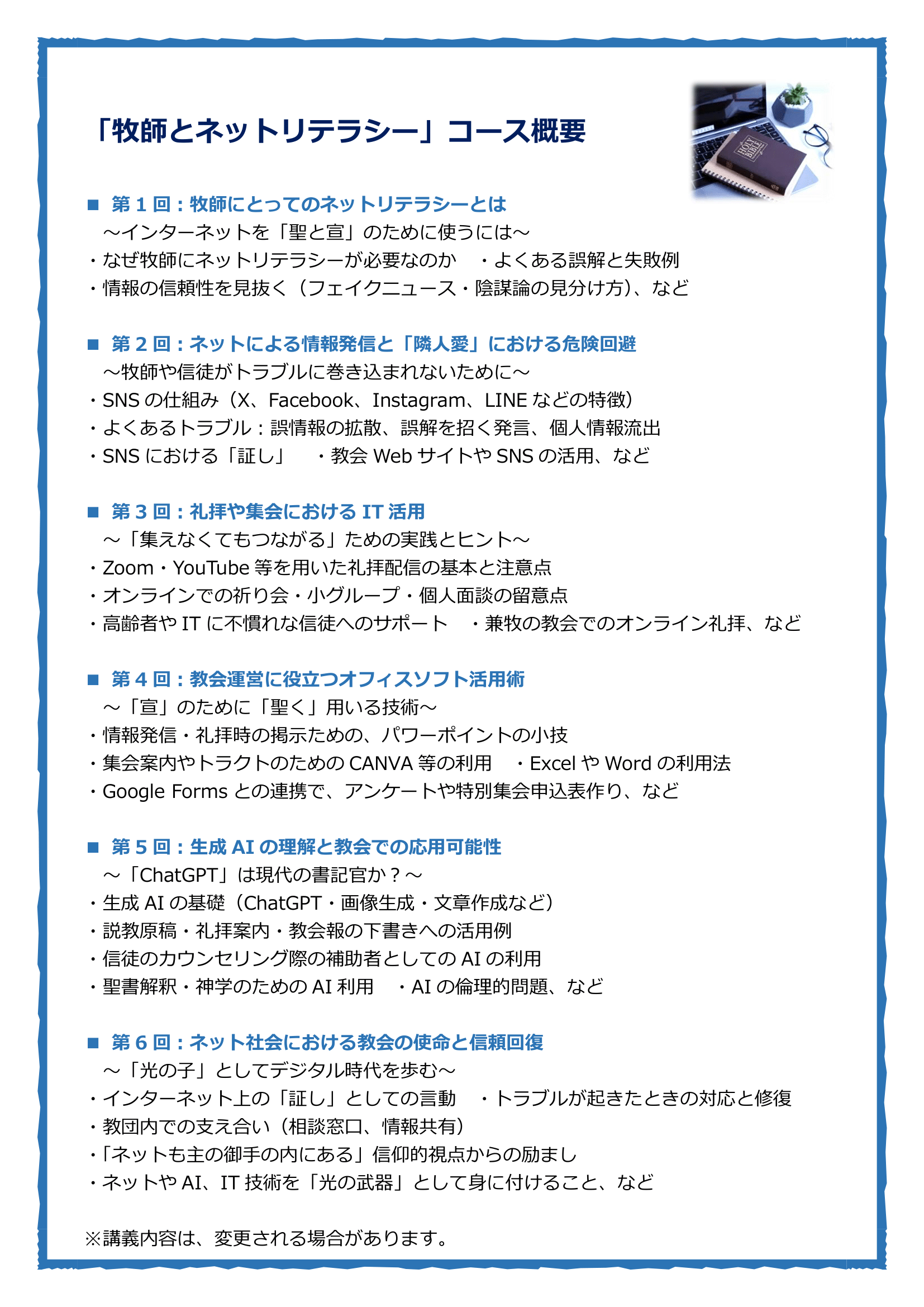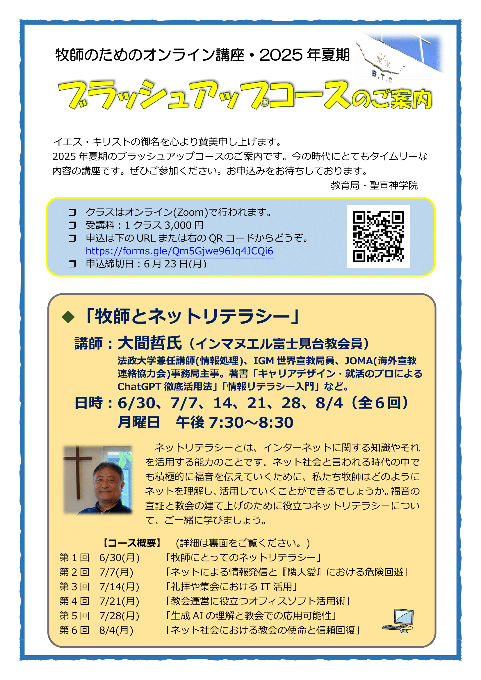 牧師のためのオンライン講座・2025年夏期